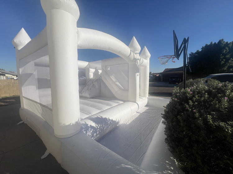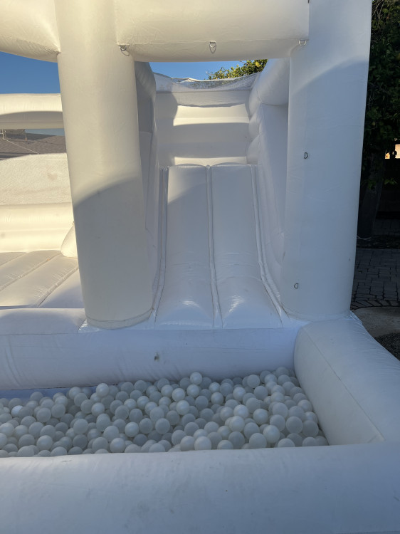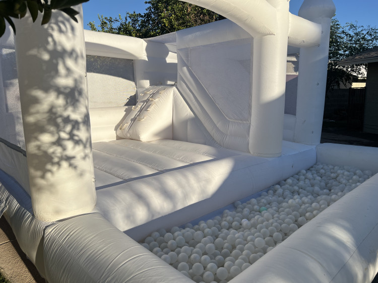 Our White Cloud Combo Bounce House is the perfect choice for younger children! This compact, all-white inflatable is designed specifically for toddlers and kids, giving them a safe and fun place to jump and play without the overwhelming size of a full-scale bounce house.
